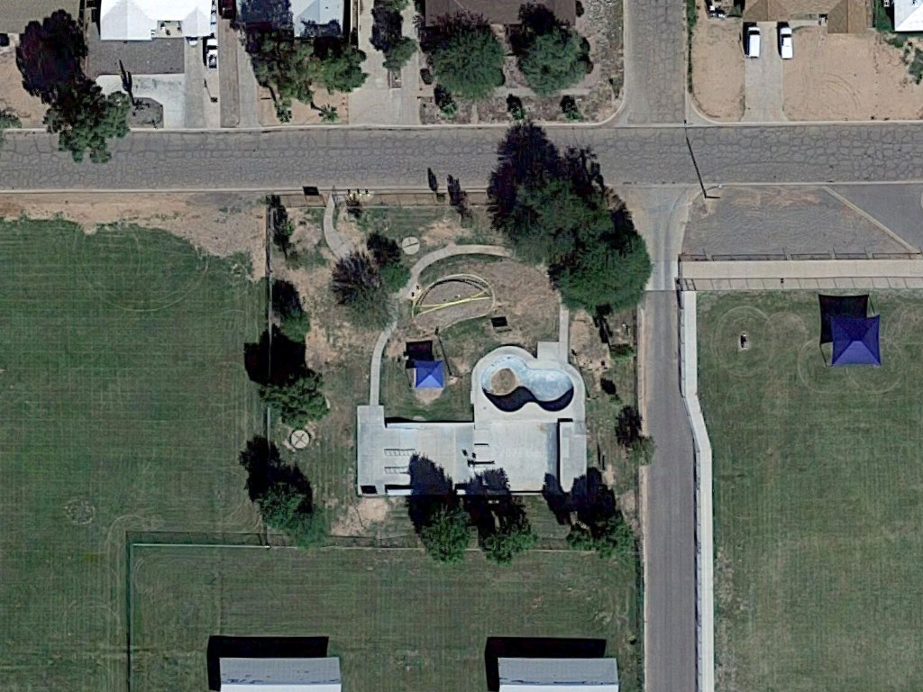 Coolidge Rotary Skate Park is located next to West Elementary School in Coolidge, Arizona. It is a 7,500 square foot poured concrete skate park. This small footprint park has one peanut shaped bowl and a street course. The street course is a large back-and-forth setup with a 6' quarterpipe on one end, a pyramid section, and a decked bank with hubbas and rails on the other end. All transitions in the park are finished with metal coping. The park is equipped with lights for night skating. There are swings and a picnic bench for relaxing between skate sessions.