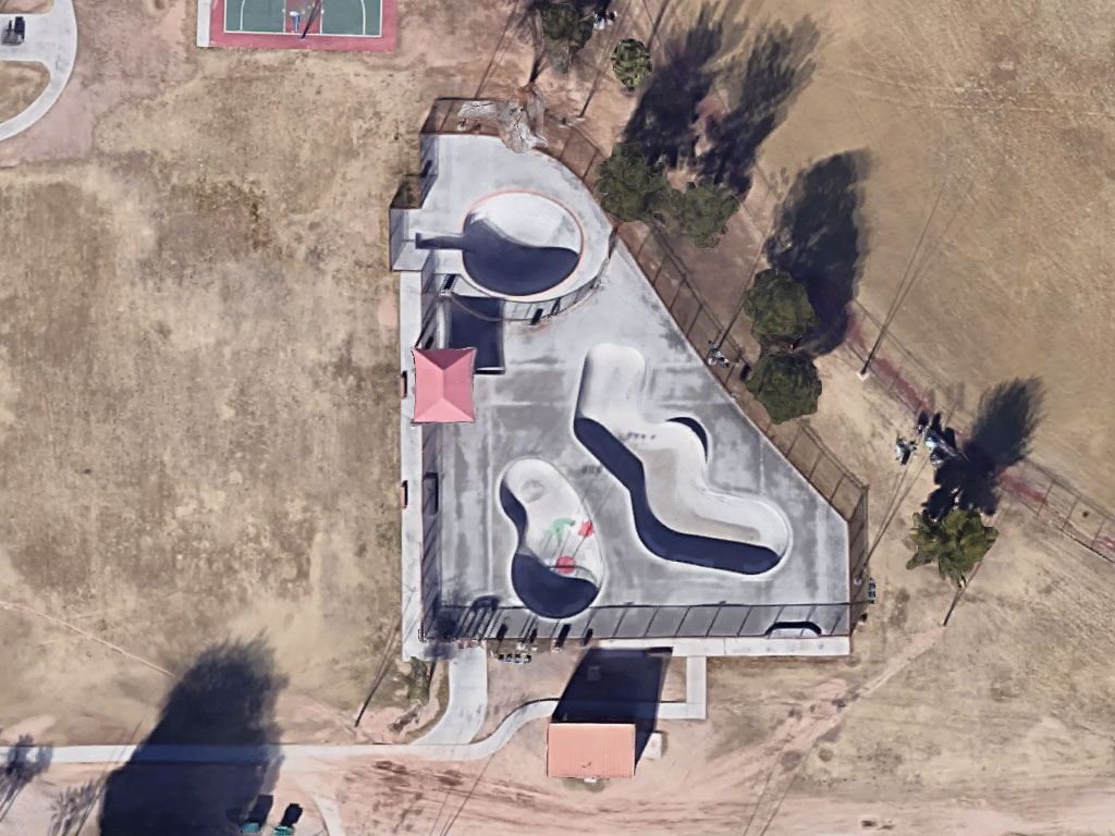 Albert M. Gallego Skate Park is located inside of Santa Rita Park in Tucson, Arizona. This poured concrete skate park features 12,000 square feet of room to skate. The park has three skating bowls - a Flow Course Bowl, Kidney Bowl, and Clam Bowl. This park is awesome for vert/bowl skaters, but there is not much here for street style skating. The park does have two small rectangular boxes with coping to practice grinds and ollie tricks. There is a shade ramada over one area of the park. The park is equipped with lights for night use.